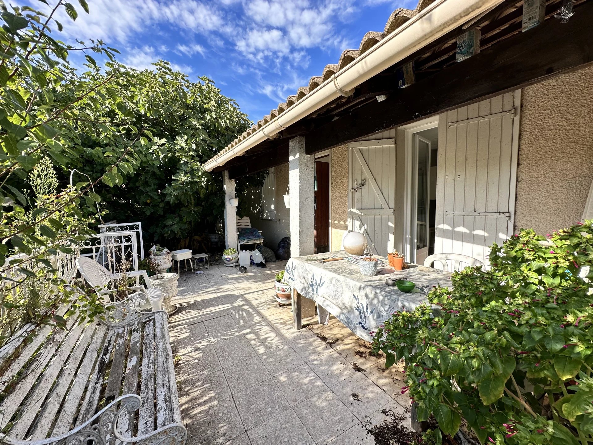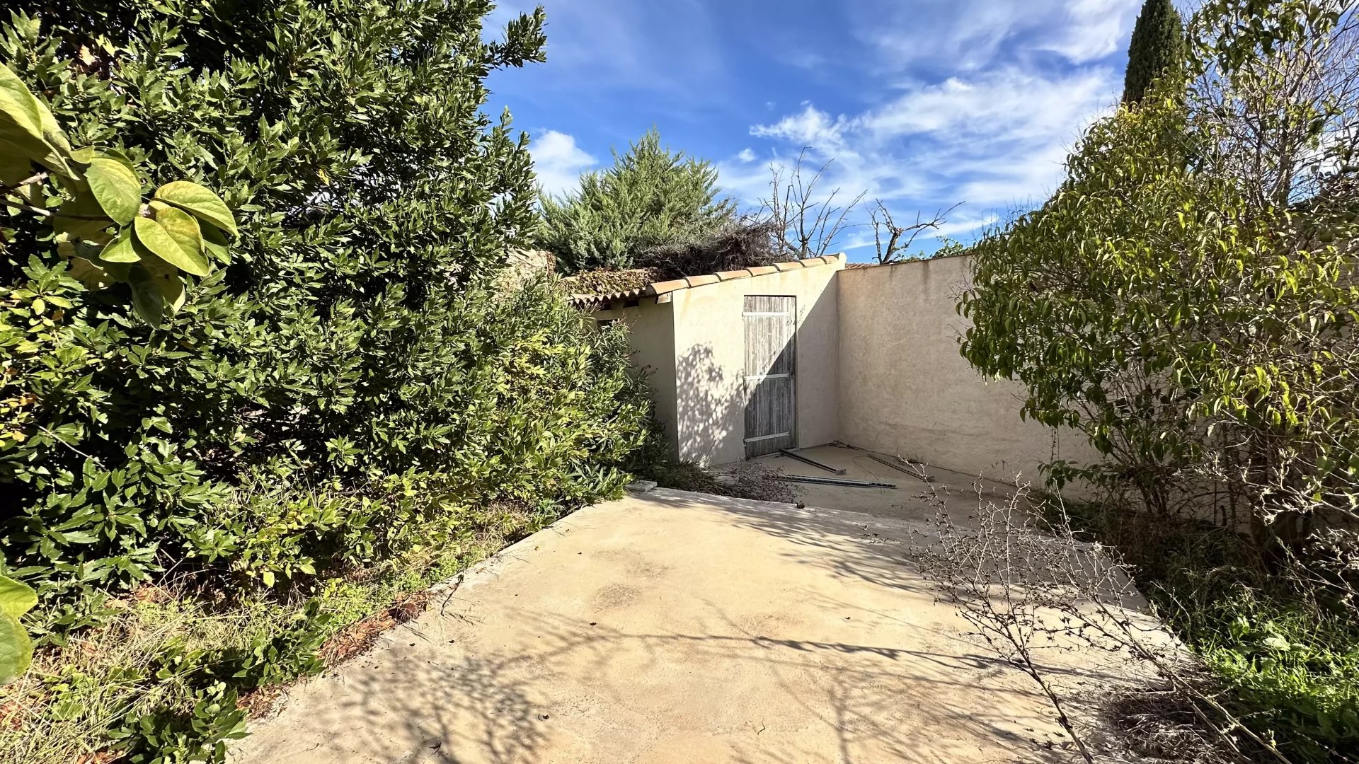 La maison se compose d'une entrée, une cuisine donnant sur une terrasse couverte, un séjour donnant sur une deuxième terrasses, un dégagement qui dessert un WC indépendant, quatre chambres dont trois avec placards et une salle d'eau avec une douche à l'italienne (rénovation récente). Un garage accessible par la cuisine. Un jardin avec un abris jardin et possibilité de créer une piscine.